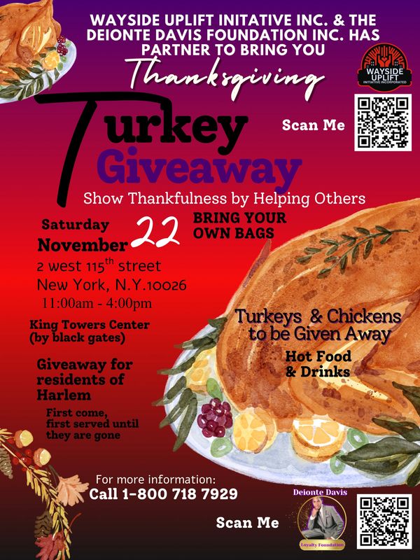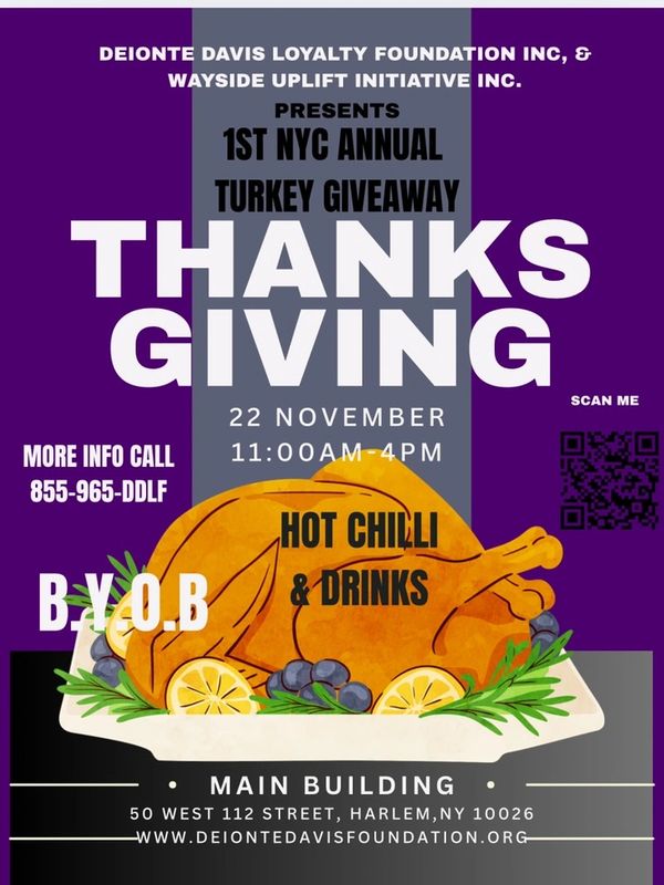 This Thanksgiving, we’re coming together to nourish hearts and homes. The Deionte Davis Loyalty Foundation (DDLF) is proud to partner with Wayside Uplift Initiative Inc. to host our annual Turkey Giveback, a celebration of community, compassion, and legacy.